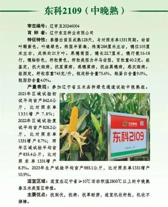 東單1331、東科2109入選朝陽(yáng)市2026年玉米主推品種名錄
